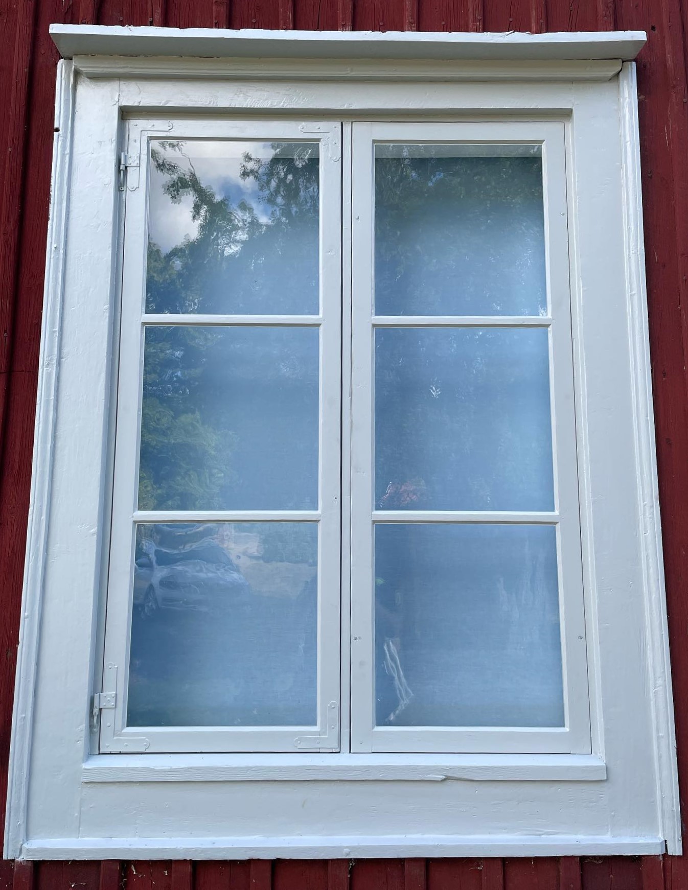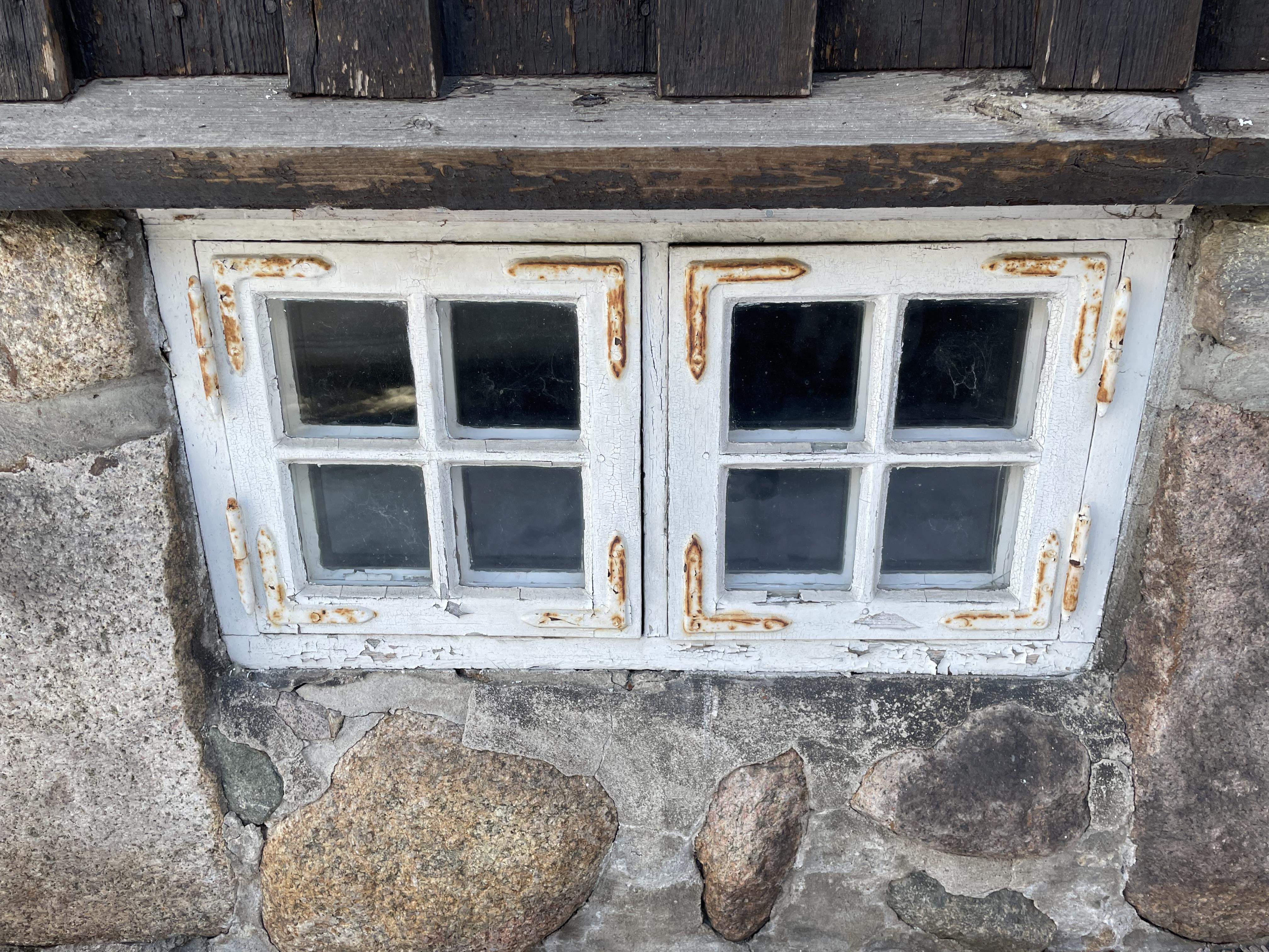 Till trälagningarna används senvuxen kärnfuru med hög densitet. Beslagen återanvänds eller ersätts vid behov av liknande kulturbeslag. Vi använder linoljekitt och linoljefärg.